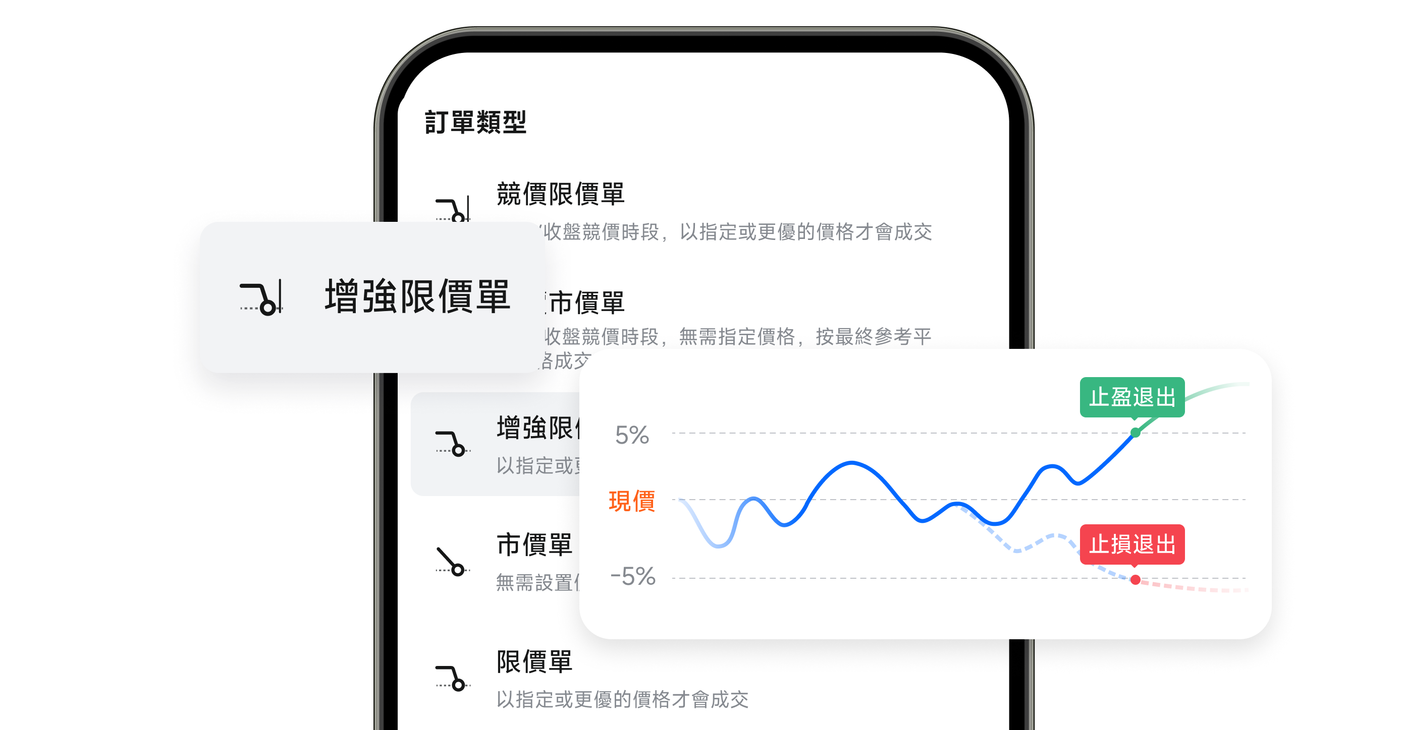 持限价、增强限价、竞价限价等多种订单类型,可设置止损止盈等条件委托,智能管理风险